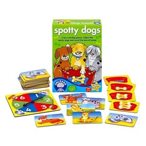 Learn to count with one of these friendly spotty dogs. All the 24 cards are laid out on the table, using the dog sides showing. Players get it in turn to spin the spinner, that can point to your numeric number. The player then has to choose a card in the table that shows your pet dog with the same number of spots as the number about the spinner. When the card is turned over, the player can find out how many biscuit bones your dog had hidden in the basket. The winner will be the player who has the highest amount of bones when all your pet cards have been collected. This is a straightforward game to play, combining number recognition and counting skills in a very simple, fun game. Additionally, it teaches patience as sometimes there are no dogs left using the right variety of spots, so players need to watch for their next turn before they could collect any further bones. Children may also be asked to count everyone else's bones on the end of the game, and even the quantity of spots on everybody's dogs to encourage maths skills. This award-winning, best-selling game is created using sturdy, recycled board, and features a wipe-clean surface. The illustrations are bright and cheerful, and also the game is quick to play, so children won't get bored. It is suited to children age 3 to 6, as well as for 2 to 4 players.